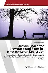 Im Rahmen der vorliegenden qualitativen Einzelfallstudie sollen die psychischen und physischen Auswirkungen einer sport- und bewegungstherapeutischen Intervention bei einer akut schwer depressiven Patientin untersucht werden. Des Weiteren soll sie beschreiben, wie der Sport- und Bewegungstherapeut diese Patientengruppe zur Bewegung aktivieren kann und wie sich ihr Bewegungsverhalten und ihre Körperhaltung während der sport- und bewegungstherapeutischen Intervention verändern. Depression gehört zum Krankheitsbild der affektiven Störungen. Sie zählt heutzutage zu der häufigsten psychischen Erkrankung. Etwa 5-10% der deutschen Bevölkerung leidet an einer behandlungsbedürftigen Depression. Zwischen 10 und 20 % erkranken im Laufe ihres Lebens an einer Depression. Für die Betroffenen ist die schwerwiegende Erkrankung eine Qual. Antriebslosigkeit, Interessensverlust, Gefühllosigkeit sind unter anderem Symptome dieser Erkrankung (MÖLLER et al., 2009).