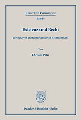 »Existence and Law. Perspectives of Existential Legal Thinking« Existential thinking is currently experiencing an increasing renaissance in the public and academic debate. In the legal discussion, however, existential philosophy has always had a difficult status. As a supposed philosophy of individualism, it seemed too distant from questions of normativity. But is existential philosophy really the anti-normative philosophy as which it was labelled? The present work is intended to explore the potential of existential philosophy for today's legal philosophical discourse.