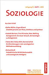 Die »Soziologie« ist das Forum der Deutschen Gesellschaft für Soziologie (DGS). Die Zeitschrift fördert die Diskussion über die Entwicklung des Fachs, informiert über die Einbindung der deutschen Soziologie in ihren europäischen und weltweiten Kontext und dient dem Informationsaustausch über die Arbeit in den Sektionen und Arbeitsgruppen innerhalb der DGS. Herausgegeben im Auftrag der DGS: Prof. Dr. Dirk Baecker; Redaktion: Prof. Dr. Sylke Nissen und Dipl.-Pol. Karin Lange, Universität Leipzig, Institut für Soziologie.