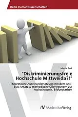 Bibliographische Beschreibung: Ruck, Juliette: Diskriminierungsfreie Hochschule Mittweida ?! Theoretische Auseinandersetzung mit dem Anti-Bias-Ansatz und methodische Überlegungen zur hochschulpolitischen Bildungsarbeit. 50 S. Mittweida, Hochschule Mittweida/ Roßwein (FH), Fakultät Soziale Arbeit, Bachelorarbeit 2012 Referat: Die Bachelorarbeit befasst sich mit der Fortführung des Projekts Diskriminierungsfreie Hochschule Mittweida?! Der Schwerpunkt der Arbeit liegt dabei auf der theoretischen Auseinandersetzung mit dem Anti-Bias-Ansatz in Form einer Literaturrecherche. Daneben wurden Meinungen von ProfessorInnen und MitarbeiterInnen der Fakultät Soziale Arbeit gesammelt, um Überlegungen zur methodischen Umsetzung in der hochschulpolitischen Bildungsarbeit anzustellen.