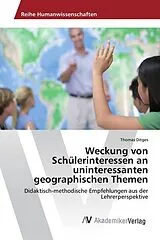 Verschiedene Studien im deutsch- und angloamerikanischen Sprachraum bestätigen ein geringes Interesse von Schülern an bestimmten Themen des Geographieunterrichts. Dies ist häufig verbunden mit einem Rückgang des Fachinteresses im Verlauf der Sekundarstufe I. Der Ergründung didaktisch-methodischer Maßnahmen zur Weckung von Schülerinteressen an wenig interessanten Unterrichtsthemen wird daher in der geographiedidaktischen Unterrichtsforschung eine wachsende Bedeutung beigemessen. Auf der Grundlage eines standardisierten Fragebogens wird in dieser Arbeit untersucht, welche didaktisch-methodischen Maßnahmen nach Ansicht von Geographielehrerinnen und -lehrern geeignet sind, um ein Schülerinteresse an wenig interessanten Unterrichtsthemen des Geographieunterrichts zu wecken.