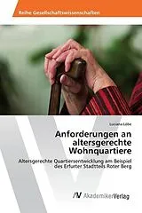 Die Anforderungen an altersgerechte Wohnquartiere gewinnen aufgrund der aktuellen demografischen Entwicklungen in Deutschland zunehmend an Relevanz. Die fortschreitend alternde Gesellschaft stellt die Kommunen und die Wohnungswirtschaft vor neue Herausforderungen. Eine altersgerechte Anpassung von Wohnungen, Gebauden und Wohnumfeld sind im Zuge der Transformationsprozesse städtischer Quartiere zwingend erforderlich. Im Rahmen dieser Arbeit werden die Anforderungen an altersgerechte Wohnquartiere und die Handlungsfelder von Akteuren am Beispiel des Erfurter Stadtteils Roter Berg näher untersucht.