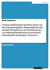 Studienarbeit aus dem Jahr 2023 im Fachbereich Medien / Kommunikation - Multimedia, Internet, neue Technologien, Note: 2,0, Ruhr-Universität Bochum (Institut für Medienwissenschaft), Veranstaltung: Propädeutikum Medientechnik und Medienpolitik, Sprache: Deutsch, Abstract: Diese Hausarbeit gibt Ihnen einen faszinierenden Einblick in die Welt des Robo-Advice aus einer Wirtschafts- und Medienwissenschaftlichen Perspektive. In dieser Arbeit wird der Homo Oeconomicus und seine Bedeutung für den Einsatz von Robo-Advice untersucht. Dabei wird sich auch der Verhaltensökonomie angenähert, indem wir sie nutzen um zu erklären, welche Faktoren unsere wirtschaftlichen Entscheidungen beeinflussen. Zudem werfen wir einen Blick auf die Medienwissenschaft und wie sie den Robo-Advice als Brücke zur Überwindung von Informationsdefiziten im Finanzhandel darstellt. Erfahren Sie zum einem, wie Smavesto das Informationsdefizit im modernen Finanzhandel überwindet und dabei hilft, fundierte Entscheidungen zu treffen und zum anderen, wie Smavesto mediale Wirkungen erzielt. Diese Hausarbeit bietet Ihnen wertvolle Erkenntnisse und ein tiefes Verständnis für die Ursache und Intention des Robo-Advice aus der Nutzerperspektive.