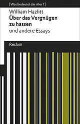 Es gibt eine Wiederentdeckung zu machen: William Hazlitt (17781830), Journalist und Schriftsteller, Zeitgenosse der englischen Romantiker, eng befreundet mit den berühmten Dichtern Coleridge und Wordsworth. Seine Texte gehören zum Frechsten, Amüsantesten und Zeitlosesten (!), was in der Form des Essays bis heute veröffentlicht wurde. In diesem Band kann man vier seiner besten Stücke in neuer Übersetzung wiederlesen: Über das Vergnügen zu hassen , Über Vorurteile , Über unangenehme Zeitgenossen und Über die Angst vor dem Tode .