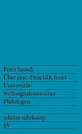 Peter Szondi war bis zu seinem Tode im Oktober 1971 Ordinarius der Allgemeinen und Vergleichenden Literaturwissenschaft an der Freien Universität Berlin. Er hat in den Jahren 1965 bis 1971 wiederholt zu Problemen der Hochschulpolitik Stellung genommen. Seine entschiedenen Kommentare, seine Parteinahme für Veränderungen des Ausbildungssystems und für die Demokratisierung der Schulen und Hochschulen hat ihn frühzeitig zu einem der wichtigen Sprecher der Reformbewegung an der Freien Universität Berlin werden lassen. Die Vorschläge, die er gemacht hat, die Kritik an der Ordinarienuniversität alten Stils, die er als einer der ersten Professoren seines Fachs formuliert hat, zeigen den bedeutenden Gelehrten als politisch engagierten Verfechter eines gewandelten Selbstverständnisses der Universität. Peter Szondis Arbeiten zu diesem Thema versammelt unser Band.
