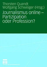 Journalismus online - Partizipation oder Profession.- Einführung: Journalismus online - Partizipation oder Profession.- Internet und Journalismusforschung. Theoretische Neujustierung und Forschungsagenda.- Professionalisierung online - Journalismus als Beruf.- Recherchoogeln. Wie Zeitungsjournalisten das Internet für ihre Arbeit nutzen.- Die Suchmaschine als Danaergeschenk. Zur strukturellen Gewalt der Googleisierung des Journalismus.- Journalismus als Partizipation - Bürgerjournalisten und Weblogs.- Die Laien kommen! Wirklich? Eine Untersuchung zum Rollenselbstbild sogenannter Bürgerjournalistinnen und Bürgerjournalisten.- Börse im Blog. Eine Analyse medienintegrierter und unabhängiger Finanz-Weblogs.- Professionell-partizipative Nachrichtensites.- Qualität im Netz - Medienkritik und journalistische Standards.- Neues Medium, alter Journalismus? Eine vergleichende Inhaltsanalyse tagesaktueller Print- und Online-Nachrichtenangebote.- Media WWWatchdogs? Die Rolle von Blogs für die Medienkritik in den USA.- Weblogs und Qualitätssicherung. Zu Potenzialen weblogbasierter Kritik im Journalismus.- Mitreden, mitrecherchieren, mitvermarkten. Journalismus mit Rückkanal am Fall Natascha Kampusch.- Journalisten als Blognutzer: Verderber journalistischer Standards?.- Praxisperspektiven - Zukunft des Online-Journalismus.- Praxisperspektiven: Zukunft des Onlinejournalismus.- Spezialist oder Eier legende Wollmilchsau?.- Podcasting - neues Medium oder alte Technik?.- Den Lesern eine Stimme geben.- Internationale Perspektiven - Weltweiter Journalismus im Netz?.- Professional identity in a participatory media culture.- Citizen participation in online news media. An overview of current developments in four European countries and the United States.