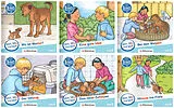 Alle Kinder lernen die gleiche Geschichte kennen. Jedes Kind kann die Geschichte in 6 Folgen (Heft 1 bis 6) entsprechend seiner Fähigkeiten (Schwierigkeitsstufe A, B oder C) erlesen. Anschließend können alle Kinder gemeinsam über diese eine Geschichte sprechen und diskutieren. Die unterschiedlichen Zugänge zu den 6 Fortsetzungsgeschichten führen zu einem gemeinsamen Erlebnis. Der Inhalt stiftet Gemeinsamkeit. Kein Kind muss allein zurück bleiben. Im Laufe der Zeit kann jedes Kind sich an den drei Schwierigkeitsstufen der Geschichten versuchen. So wird Lernfortschritt ganz praktisch erfahrbar. Das spornt an und macht Mut. • Heft 1: Wo ist Mama? • Heft 2: Eine gute Idee • Heft 3: Bei den Welpen • Heft 4: Der Umzug • Heft 5: Das neue Zuhause • Heft 6: Hinaus ins Freie Schwierigkeitsstufe A Typografische Mittel Sehr einfach (kompakt mit Streubildern): • Silbenmarkierung • erhöhter Silben- und Wortabstand • Streubilder • große Fibel-Schrift • farbige Illustrationen zu jeder Textseite Sprachliche Mittel • Streubilder ersetzen Nomen • Begleitsätze zur wörtlichen Rede werden durch Streubilder ersetzt • wenige lange Wörter • wenige seltene Wörter • wenige Attributergänzungen • kurze, einfache Sätze eine fortlaufende Geschichte wird erzählt • geringer Textumfang