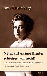 Angesichts der neuen Eskalation des deutschen Militarismus brauchen wir die Erinnerung an Menschen wie Rosa Luxemburg (1871-1919). Sie trug im September 1913 als Rednerin auf mehreren Kundgebungen vor, die Arbeiter dürften nicht auf ihre Brüder in anderen Ländern schießen. Im Falle eines Kriegsausbruchs gelte es, die Räder des Mordgetriebes durch Massenstreiks lahmzulegen . . . Die Staatsanwaltschaft leitete ein Ermittlungsverfahren ein, das zur Anklage führte. Bei der Hauptverhandlung im Februar 1914 wurde der "Staatsfeindin Nr. 1" ein "Attentat auf den Lebensnerv unseres Staates" vorgeworfen. Luxemburg, von den Gegnern als "blutige Rosa" diffamiert und verurteilt wegen "Aufhetzung von Soldaten zum Ungehorsam", verbrachte die Zeit des Ersten Weltkrieges zum Großteil im Gefängnis. Sie hatte Abscheu vor jeglicher Art von Gewalt - auch vor der tötenden Gewalt als Mittel des revolutionären Ringens. Das lässt sich in ihren Wortmeldungen bis hin zur späten Programmschrift für den Spartakusbund aufweisen. Sie vermutete sogar eine geschichtliche Tendenz, der zufolge auch die Kämpfe um eine gesellschaftliche Transformation im Lauf der Zeit immer gewaltärmere Formen annehmen: Die blutigen Barrikadenkämpfe früherer Revolutionen weichen dem Kampfmittel des Massenstreiks. Bei aller revolutionären Begeisterung warnte sie mit Blick auf klare Kräfteverhältnisse vor sinnlosem Blutvergießen. Die Agenten der Kriegsreligion ließen Rosa Luxemburg heimtückisch ermorden. Doch ihre Stimme wider den Rüstungswahn und die Barbarei der Herrschenden kann keiner zum Verstummen bringen. edition pace. Regal: Pazifisten & Antimilitaristen aus jüdischen Familien 13, bearbeitet von Bruno Kern.