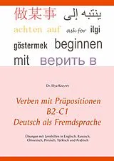 Dieses Buch stellt Ihnen über 100 deutsche Verben mit Präpositionen, mit Erklärungen und Beispielsätzen vor. Um Ihnen das Erlernen und Verstehen der vielfältigen Bedeutungen der Verben zu erleichtern, finden Sie diese Verben auch ins Englische, Russische, Chinesische, Persische, Türkische und Arabische übersetzt. In diesem Übungsbuch trainieren Sie zunächst die Anwendung der Präpositionen. Sie erlernen die Unterschiede zwischen ähnlich klingenden Verben und alles, was sonst mit diesen Verben zusammenhängt, vom Einsatz der Verben im Passiv bis hin zum Präteritum, zum Plusquamperfekt und zu vielfältigen anderen grammatikalischen Strukturen. Vom Schwierigkeitsgrad her sind die Übungen und Beispiele auf dem Niveau B2-C1. Am Ende des Buches finden sich alle Lösungen im vollen Textzusammenhang. Aus pädagogischer Sicht ist es sehr nützlich, beim Überprüfen und Korrigieren die Sätze immer wieder im Gesamtzusammenhang zu lesen. So verstehen Sie die individuellen Bedeutungen der einzelnen Verben und die Satzinhalte besser.