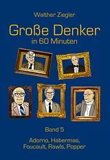 Große Denker in 60 Minuten - Band 5 ist der fünfte Sammelband der beliebten gleichnamigen Buchreihe. Er umfasst die fünf Einzelpublikationen "Adorno in 60 Minuten", "Habermas in 60 Minuten", "Foucault in 60 Minuten", "Rawls in 60 Minuten" und "Popper in 60 Minuten". Dabei wird der Kerngedanke des jeweiligen Denkers auf den Punkt gebracht und die Frage gestellt: "Was nutzt uns dieser Gedanke heute?" Vor allem aber kommen die Philosophen selbst zu Wort. So werden ihre wichtigsten Aussagen als Zitate in Sprechblasen grafisch hervorgehoben und ihre Herkunft aus den jeweiligen Werken angezeigt. Jeder der fünf Philosophen ist mit bis zu 100 seiner bedeutendsten Zitate vertreten. Die spielerische, gleichwohl wissenschaftlich exakte Wiedergabe der einzelnen Denker ermöglicht dem Leser den Einstieg in die großen Fragen unseres Lebens. Denn jeder Philosoph, der zu Weltruhm gelangt ist, hat die Sinnfrage gestellt: Was ist es, was die Welt im Innersten zusammenhält? Herausgekommen sind dabei sehr unterschiedliche Antworten. Bei Adorno ist es die dialektische Entwicklung der Zivilisation von der Steinzeit bis zum Kapitalismus mit der einhergehenden Entfremdung der Menschen von der Natur. Habermas sieht dagegen in diesem historischen Entwicklungsprozess die Chance, die Gesellschaft durch die emanzipatorische Kraft der Sprache im kommunikativen Handeln schrittweise zu verbessern. Foucault hingegen bleibt skeptisch und zeigt uns die ehernen Strukturen auf, in denen wir als moderne Individuen gefangen sind. Rawls entwickelt ein schillerndes Verfahren zur Herstellung idealer und gerechter Verhältnisse. Popper schließlich stellt eine ganz neue Wissenschaftstheorie auf, wonach jede wissenschaftliche Wahrheit nur vorläufigen Charakter hat und durch bessere Wahrheiten abgelöst werden müsse. Die Frage nach dem Sinn der Welt und somit dem Sinn unseres Lebens wird von den Philosophen also durchaus unterschiedlich beantwortet, doch eines steht fest: Jeder der fünf Denker hat aus seiner Perspektive einen Funken aus dem Kristall der Wahrheit herausgeschlagen.