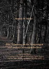 'Eine Warnung an die Neugierigen und andere Geistergeschichten', nach dem Buch 'A Warning to the Curious and other Ghost stories' von Dr. M.R. James, erschienen im Jahre 1925. SPUK IM PUPPENHAUS DAS UNGEWÖHNLICHE GEBETBUCH DER GRENZSTEIN DES NACHBARN EIN BLICK VOM HÜGEL EINE WARNUNG AN DIE NEUGIERIGEN EIN ABENDVERGNÜGEN Dr. Montague Rhodes James war ein englischer Paläograf, Altertumsforscher und Autor von Geistergeschichten sowie Vorsteher des Eaton College. Er war einer der großen und auch von seinen Kollegen sehr geachteter Verfasser von Geistergeschichten, die gerne, einer langen Tradition folgend, an Weihnachtsabenden im Kreise von Familie und Freunden vorgelesen wurden, wobei er seinen eigenen, teils eigentümlichen Stil hatte. Dazu verfasste er im Laufe der Zeit eine große Anzahl von Lehrbüchern und Ausarbeitungen. Sein besonderes Interesse galt apokryphen Bibelschriften und mittelalterlichen Manuskripten. Als profunder Kenner der Materie katalogisierte er einen Großteil der Manuskriptbestände der Universitäten von Cambridge und Oxford. Seine einzelnen Geschichten erschienen mehrfach in gesammelter Form in Büchern. Bei denen im vorliegenden Werk handelt es sich nicht unbedingt um seine bekanntesten Geschichten, die jedoch alle ihren besonderen Reiz haben. Man kennt seine Geschichten aus dem Hörfunk und Fernsehen; die BBC sendete über viele Jahre weihnachtliche Lesungen.