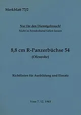 Das Merkblatt 77/2 "8,8 cm R-Panzerbüchse 54 (Ofenrohr) Richtlinien für Ausbildung und Einsatz" ist ein unveränderter Nachdruck der militärischen Vorschrift der Wehrmacht aus dem Jahr 1943. In dieser Neuauflage aus dem Jahr 2023 werden Gliederung der Panzer-Zerstörer-Einheiten, Handhabung der 8,8 cm R-Panzerbüchse 54 und die Ausbildung beschrieben.