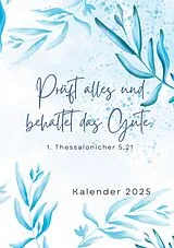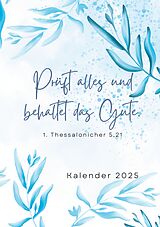 Dieser schöne Kalender in grün-blauem Design ist für das kommende Jahr 2025 mit dem Jahresvers/der Jahreslosung aus 1. Thessalonicher 5,21: "Prüft alles und behaltet das Gute." Der Planer bietet neben den Monats- und Wochenübersichten viel Platz für Gedanken zur Gebetszeit, Gemeinde- und Predigtnotizen und enthält leere Tracker zur freien Gestaltung. So trackst Du auch genau das, was Du benötigst. Zudem beginnt jeder Monat mit einem Spruch oder Bibelvers, Du kannst in einer separaten Liste auch alle wichtigen Geburtstage eintragen und Dir direkt Geschenkideen notieren - natürlich gibt es auch extra Seiten für Notizen. -Größe: A5 -Dot-Grind (gepunktet) -mattes Hardcover -Papier: fotomatt, weiß, 120g -hochwertiger Druck -gerader Rücken -Klebebindung
