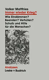 1. Neue Weltunordnung? Die Schrecken der Kriege.- 2. Kriege der Gegenwart: Empirischer Befund.- 3. Kriegsursachen: Vom Frieden zum Krieg.- 4. Kriegsführung: Modernisierung und Professionalisierung.- 5. Kriegsopfer und Kriegsfolgen.- 6. Schutz und Hilfe für Menschen im Krieg.- 7. Kriegsbeendigung: Vom Krieg zum Frieden.- 8. Kriegsfolgenbewältigung und Friedenskonsolidierung.- 9. Kriegsverhütung und Friedensvorsorge.- 10. Frieden als Zivilisierungsprojekt Materialien.- 1. Neue Weltunordnung? Die Schrecken der Kriege.- 2. Kriege der Gegenwart: Empirischer Befund.- 3. Kriegsursachen.- 4. Kriegsführung.- 5. Kriegsopfer und Kriegsfolgen.- 6. Schutz und Hilfe für Menschen im Krieg (siehe auch Abschnitt 7.).- 7. Kriegsbeendigung.- 8. Kriegsfolgenbewältigung und Friedenskonsolidierung.- 9. Kriegsverhütung und Friedensvorsorge.- Ausgewählte Literaturhinweise.