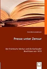 Die Vorstellung, Medien seien die vierte Macht im Staat, formt unser heutiges Verständnis von Pressefreiheit. Deutschlands Vergangenheit ist jedoch geprägt von Versuchen, die Macht der Presse zu unterdrücken. Die Karlsbader Beschlüsse von 1819 stellten die erste bundeseinheitliche Pressezensur dar, die die liberale Bewegung und ihre Sprachrohre auf viele Jahre knebelte.Welche tatsächlichen Auswirkungen hatten die Bundesgesetze von 1819 auf die deutsche Presse? Wie verarbeiteten die liberalen Blätter die restriktiven Bestimmungen? Die Autorin Anne-Karina Landmann beleuchtet die Berichterstattung des Fränkischen Merkurs - einer liberalen Tageszeitung aus Bamberg - vor, während und nach den Karlsbader Beschlüssen. In qualitativen und quantitativen Untersuchungen zeigt sie, wie das Blatt die Ereignisse, die schließlich zu den Beschlüssen führten, journalistisch aufbereitete, wie es über das geheime Treffen der Staatsoberhäupter in Karlsbad berichtete und wie sich die Berichterstattung im weiteren Verlauf immer mehr dem engen Korsett der Pressezensur anpassen musste. Das Buch richtet sich an Studierende der Kommunikationswissenschaften, Historiker und Heimatkundler.