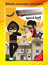 Geisterkickboarder Spiel & Spaß Büchlein, Band 3: Auf 40 Seiten können Rätsel gelöst und Figuren ausgemalt werden. Zusätzlich gibt es kleine Comics und die Geschichte Spuk im Ritterhaus zum Lesen.