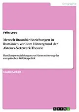 Studienarbeit aus dem Jahr 2017 im Fachbereich Geowissenschaften / Geographie - Sonstiges, Note: 1,3, Katholische Universität Eichstätt-Ingolstadt, Sprache: Deutsch, Abstract: Vor dem Hintergrund der Akteurs-Netzwerk Theorie soll im Fachbereich Mensch-Umwelt-Beziehungen, das Verhältnis von Menschen und Braunbären in Rumänien untersucht werden. Hieraus werden sich am Ende der Arbeit Handlungsempfehlungen zur Harmonisierung der europäischen Wildtierpolitik ableiten lassen. In der Arbeit soll vor dem Hintergrund dieser Angriffe und der aktuellen Gesetzesentscheidung untersucht werden, welche Faktoren einen Einfluss auf die Wahrnehmung des Bären und somit auch dessen Populationsentwicklung in Rumänien haben. Hierbei sollen der aktuelle Diskurs über den Bären, dessen rechtlicher Status, seine Perzeption durch die rumänische Gesellschaft, sowie die wichtigsten handelnden Akteure untersucht werden. Als theoretischer Rahmen wird die Akteurs-Netzwerk-Theorie gewählt, die die Arbeit im zweiten Kapitel erläutert. Der Grund für diese Wahl war, dass der Diskurs um den Braunbären in Rumänien von vielen unterschiedlichen Akteuren und Akteurs-Netzwerken mit konträren Interessen geführt wird, wie die Arbeit im Folgenden zeigen soll.