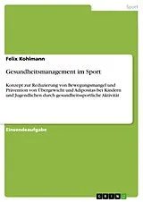 Einsendeaufgabe aus dem Jahr 2020 im Fachbereich Gesundheit - Sport - Sportökonomie, Sportmanagement, Note: 1,6, Deutsche Hochschule für Prävention und Gesundheitsmanagement GmbH, Sprache: Deutsch, Abstract: Die folgende Arbeit beschäftigt sich mit dem Thema "Konzept zur Reduzierung von Bewegungsmangel und Prävention von Übergewicht und Adipositas bei Kindern und Jugendlichen durch gesundheitssportliche Aktivität." Um im späteren Verlauf ein Gesamtkonzept erstellen zu können, wird in den nächsten beiden Punkten zuerst die aktuelle Datenlage zu dem Schwerpunktthema verdeutlicht. Im ersten Schritt werden die Empfehlungen zur gesundheitswirksamen körperlichen Aktivität von anerkannten Fachgesellschaften für Kinder und Jugendliche erörtert. Danach wird das tatsächliche Bewegungsverhalten dieser Bevölkerungsgruppe analysiert und schlussendlich ein Fazit gezogen.