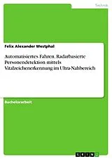Bachelorarbeit aus dem Jahr 2021 im Fachbereich Elektrotechnik, Note: 1,0, Hochschule Heilbronn, ehem. Fachhochschule Heilbronn, Sprache: Deutsch, Abstract: In der hier vorliegenden Bachelorarbeit wird eine alternative Methode der Personendetektion im Kontext des automatisierten Fahrens untersucht. Dazu wird ein FMCW-Radar verwendet, um die Vitalzeichen einer sich im Ultra-Nahbereich befindlichen Person zu erfassen. Die Fußgänger werden dabei zunächst als Objekte mit einer definierten Distanz zum Radar erkannt und nachfolgend mittels der in dieser Arbeit entwickelten Signalverarbeitung als Person klassifiziert, sofern eine Atem- beziehungsweise Herzfrequenz ermittelt werden konnte. Die Vitalzeichen können dabei mittels Analyse des komplexen Phasensignals extrahiert werden, was eine rein radarbasierte Personendetektion ermöglicht. Zur Verifizierung des Versuchsaufbaus sowie der programmierten Anwendungssoftware, wurden mehrere Experimente unter Labor- und Realbedingungen durchgeführt. Dazu wurden unter anderem zuvor festgelegte Fahrszenarien aus diversen Anwendungsfällen des automatisierten Fahrens näher betrachtet. Die Ergebnisse der Versuche ergaben eine zufriedenstellende Genauigkeit der radarbasierten Personendetektion mittels Vitalzeichenerkennung, welche somit eine zukünftige Methode für Teilfunktionen des automatisierten Fahrens darstellen könnte.
