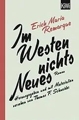 Der Weltbestseller der Anti-Kriegsliteratur - das Buch zur Oscar-prämierten Netflix-Verfilmung Der bedeutendste deutsche Roman zum Ersten Weltkrieg in einer Sonderausgabe - mit neuer Materialiensammlung und einem Nachwort des Remarque-Spezialisten Thomas F. Schneider: Schullektüre ohne Verfallsdatum. Mit diesem Roman begründete Erich Maria Remarque seinen Weltruhm und schuf ein zeitlos gültiges Bild der Schrecken des modernen Krieges. Zum hundertsten Jahrestag des Kriegsbeginns 1914 erscheint eine besonders ausgestattete, mit einem Nachwort von Thomas F. Schneider, Leiter des Remarque-Friedenszentrums der Universität Osnabrück, zur Entstehungs- und Rezeptionsgeschichte versehene Sonderausgabe. Die Geschichte des neunzehnjährigen Paul Bäumer, der als ahnungsloser Kriegsfreiwilliger von der Schulbank an die Front kommt, ist inzwischen Allgemeingut. Auch bei der erneuten Lektüre ist der Eindruck jedoch wieder erschütternd: Wie Bäumer statt der erhofften Kriegsbegeisterung und eines kurzen Abenteuers die ganze Brutalität des Gemetzels und das sinnlose Sterben seiner Kameraden erlebt, ist anrührend und empörend.