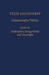 Band III der Hausdorff-Edition enthält Hausdorffs Band Mengenlehre", seine veröffentlichten Arbeiten zur deskriptiven Mengenlehre und Topologie sowie zahlreiche einschlägige Studien aus dem Nachlaß. Sein Buch Mengenlehre" erlangte besonders dadurch historische Bedeutung, als darin erstmals eine monographische Darstellung des damals aktuellen Standes der deskriptiven Mengenlehre gegeben wurde. Es ist hier von Spezialisten dieses Gebietes sorgfältig kommentiert worden. Auch die veröffentlichten Arbeiten sind mit ausführlichen Kommentaren versehen. Besonders umfassend ist in diesem Band der Edition der Nachlaß Hausdorffs berücksichtigt. Hingewiesen sei insbesondere auf seinen zahlreichen originellen Studien zu Themen der deskriptiven Mengenlehre und auf seine damals sehr originelle Vorlesung über algebraische Topologie vom Sommersemester 1933.